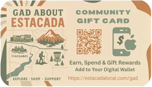 A Gad About Estacada she can use at 8 local Estacada businesses. Delivered instantly — no wrapping required.